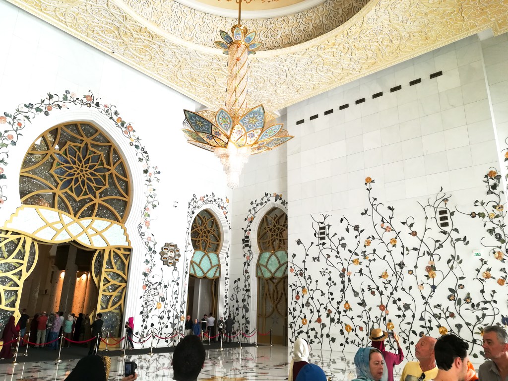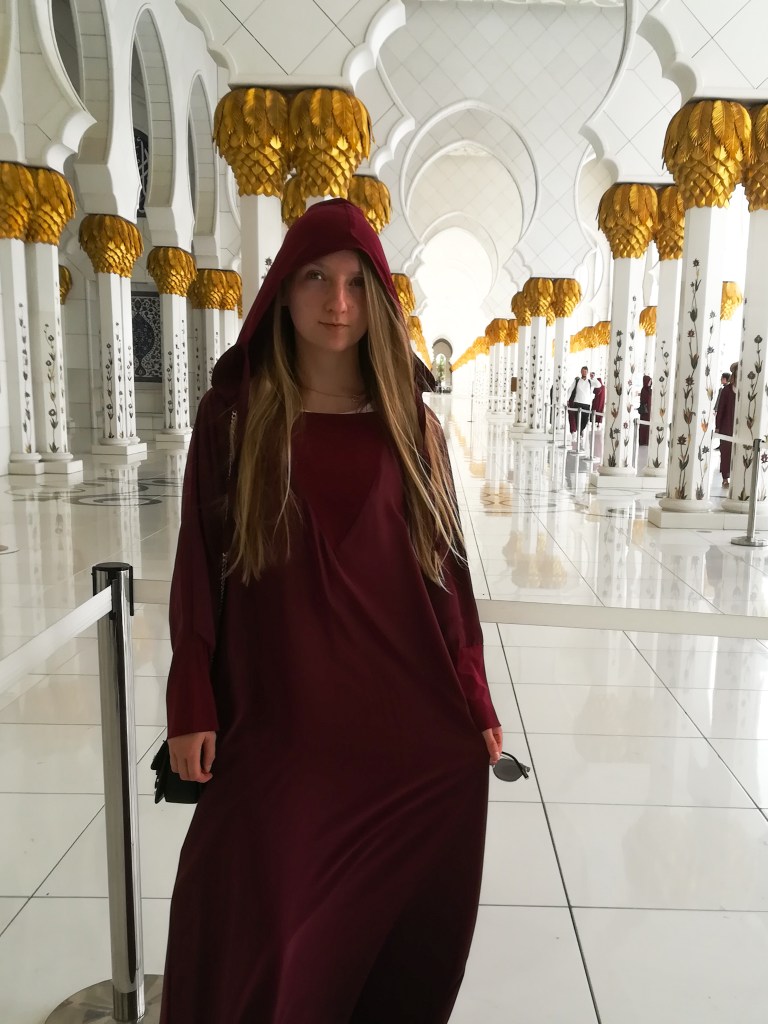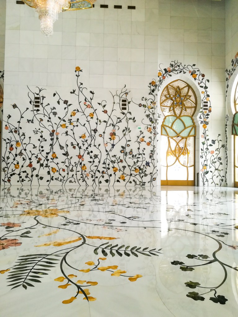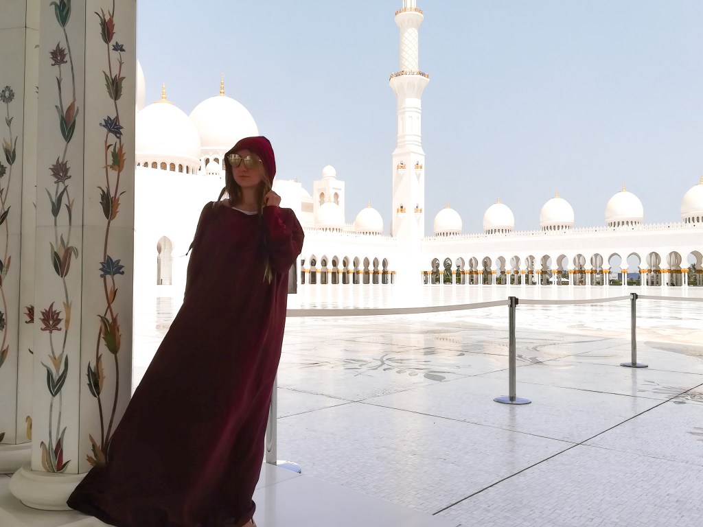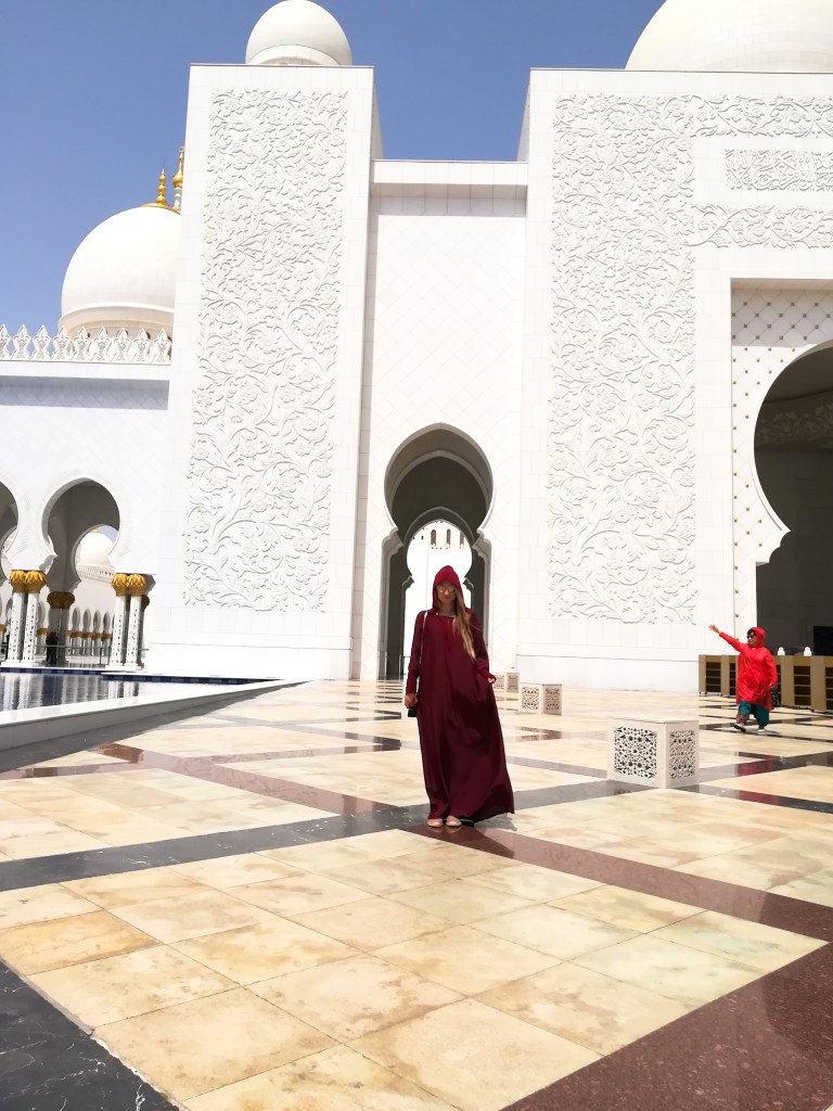 When I told people that we were going to Abu Dhabi, one of the first things everyone said was “you have to go visit the Mosque!”. The Sheikh Zayed Mosque is the biggest Mosque in UAE and the eighth biggest in the world. I love getting to know the culture in the countries that I visit so I was excited to see it!