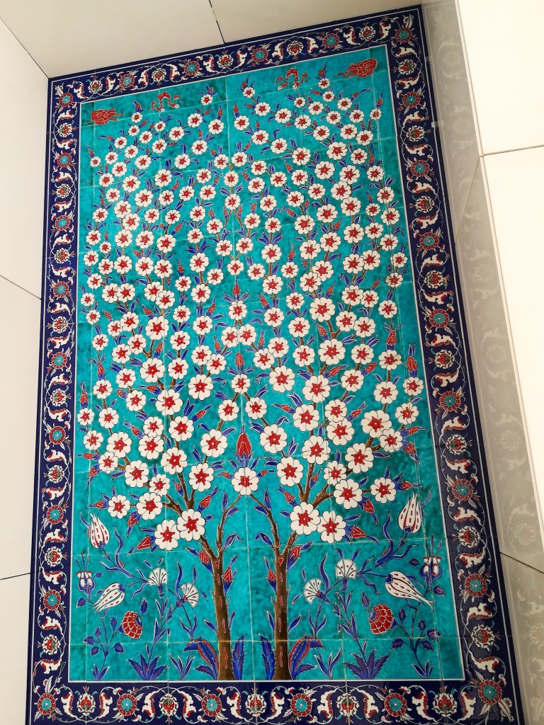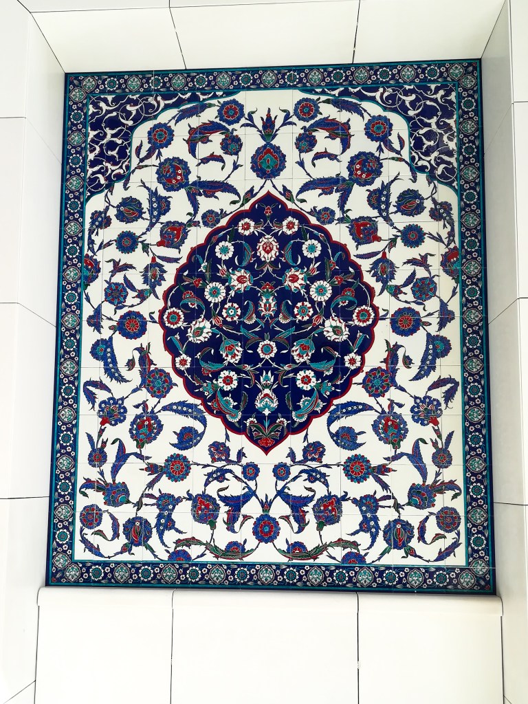We visited the mosque in Ramadan, which meant no drinking or eating in public. The entrance is actually quite far away from the Mosque itself, it leads you down to some shops and then a very long tunnel to security and eventually up to the mosque. I was very suprised to see some cafes open downstairs (with a black curtain so people fasting don’t see you eating).