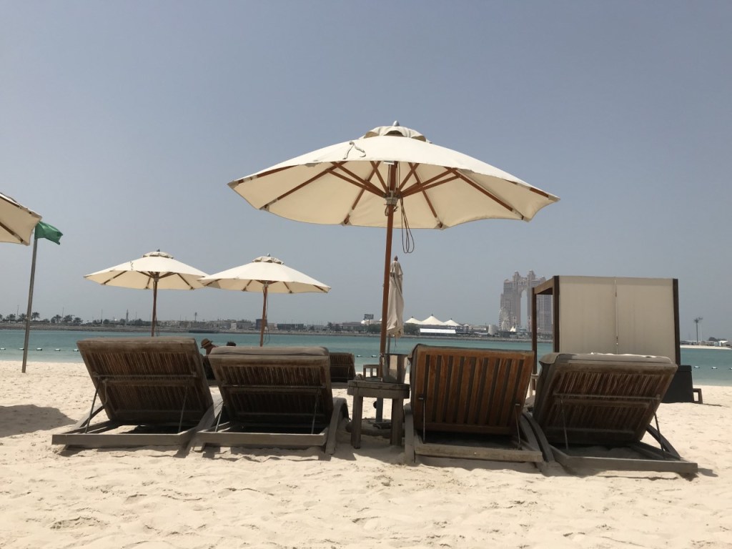 As the hotel was so quiet during Ramadan the beach was also very quiet. You can’t swim that far out into the sea and the water doesn’t get very deep – only right at the edge of the barrier is where you can’t stand anymore, so if you do like swimming in the sea that might be an issue. Fun fact: The beaches in Abu Dhabi are manmade!