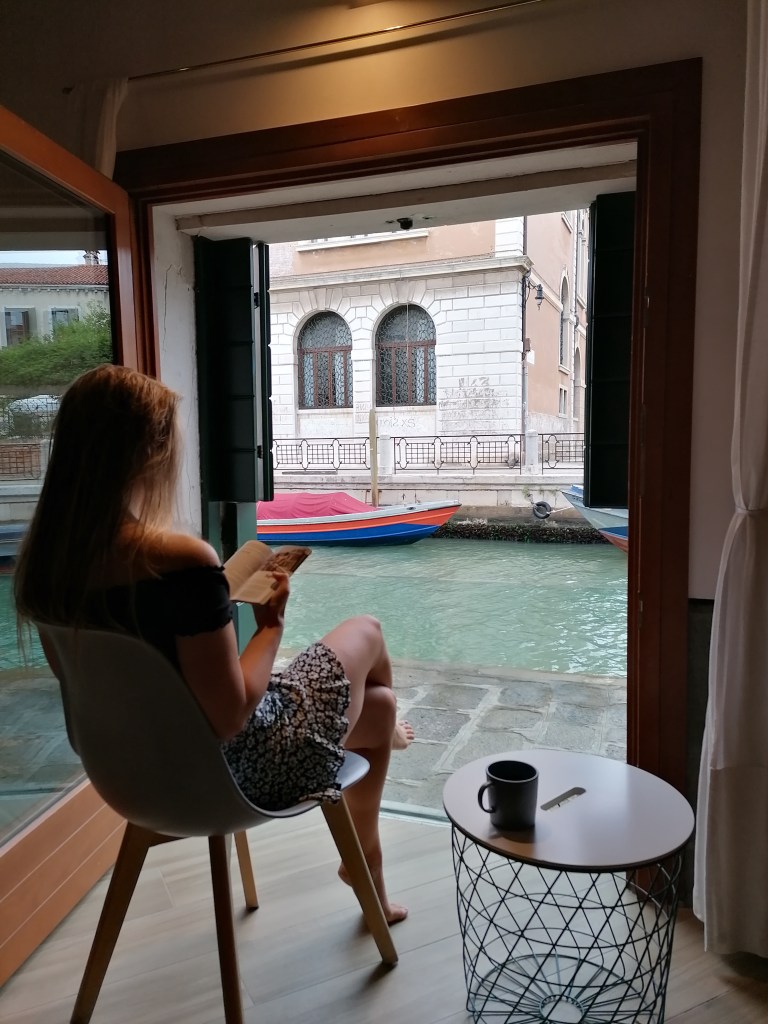 This beautiful Airbnb sits right on the canal and is in walking distance to Realto Bridge and other attractions. There is a door leading out onto a platform to the canal, however it is blocked off by a small glass barrier. We were unsure if we were allowed out onto the platform but we popped out to have some wine and it was such a gorgeous afternoon drinking wine and watching the boats bob by, I think we were also an attraction to everyone passing by! It has a seperate bedroom with a double bed and a lounge with a sofa. You can find the link here